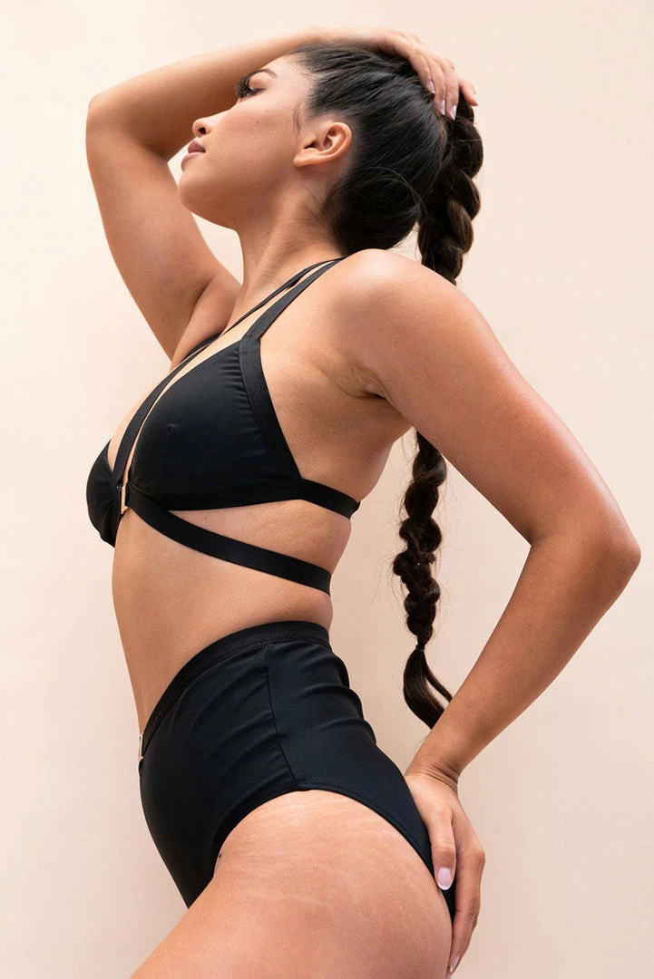 The Jemma top and Jemma High Waisted Bottoms in Recycled Black are a match made in eco-friendlyΒ heaven. Style both of these together for the ultimate set made from recycled materials!Β