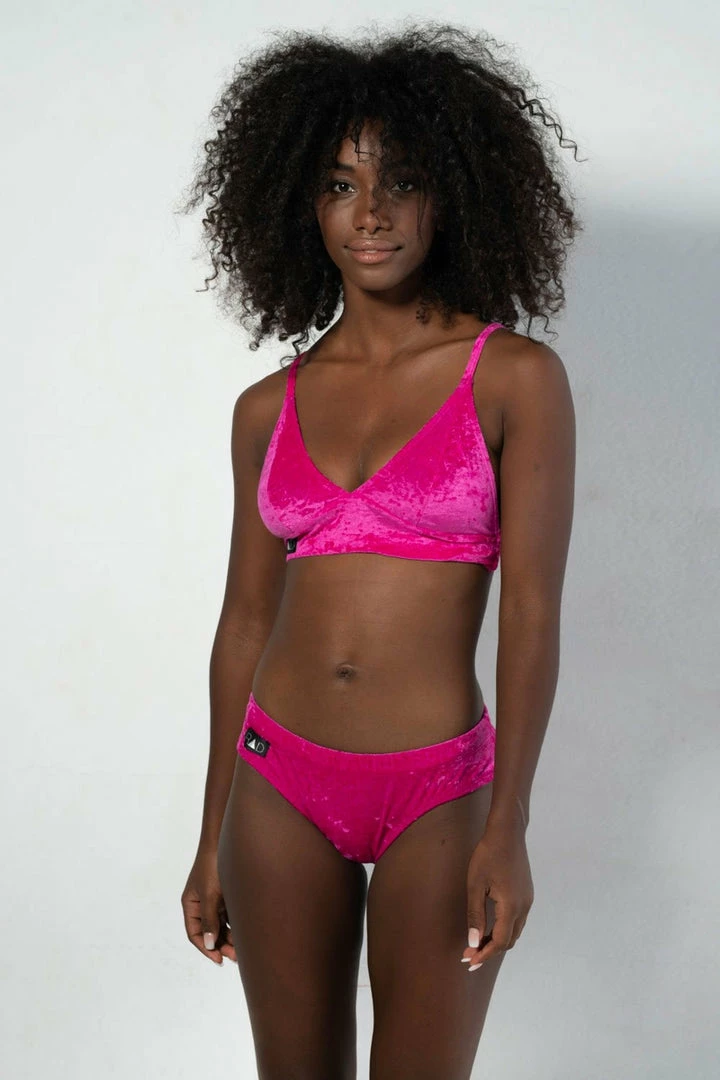 This gorgeous top features triangular cups, adjustable straps and super soft velvet fabric.