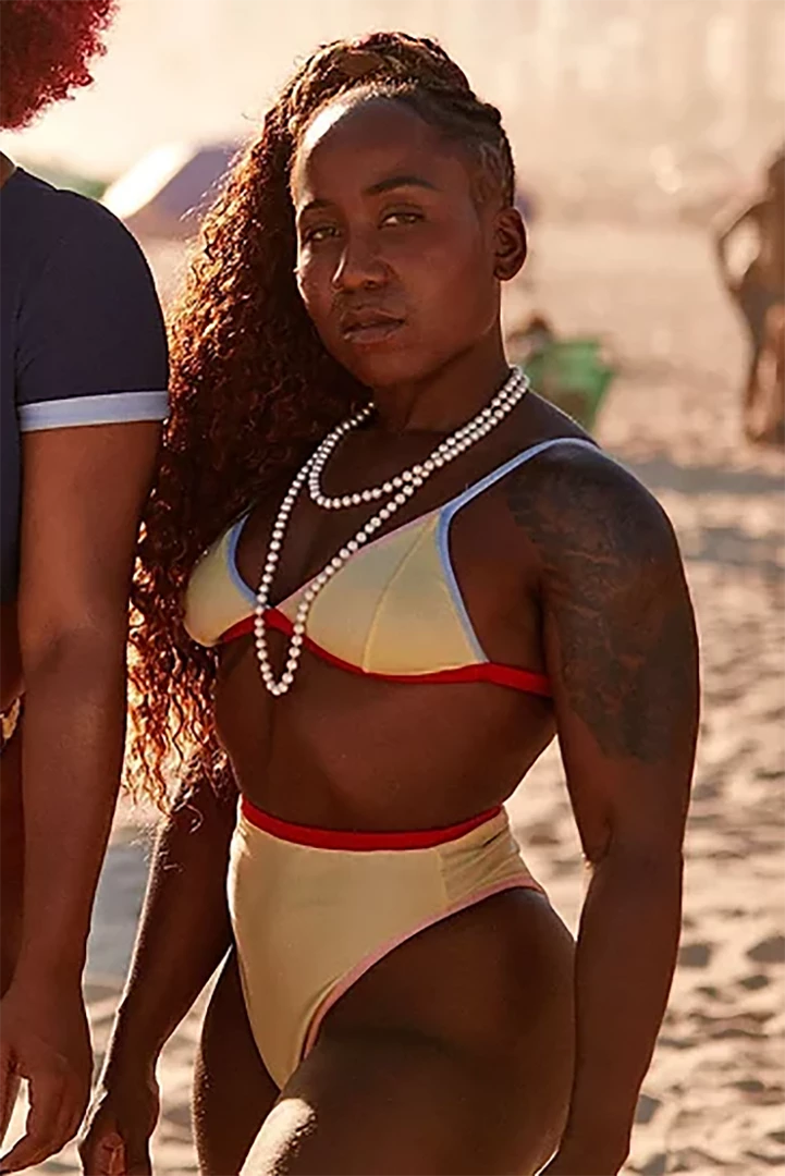 Navy blue and yellow double-sided triangle top, with coloured biases in red, light blue and rosΓ©.Β To use and abuse in training, at the beach or in the pool.
