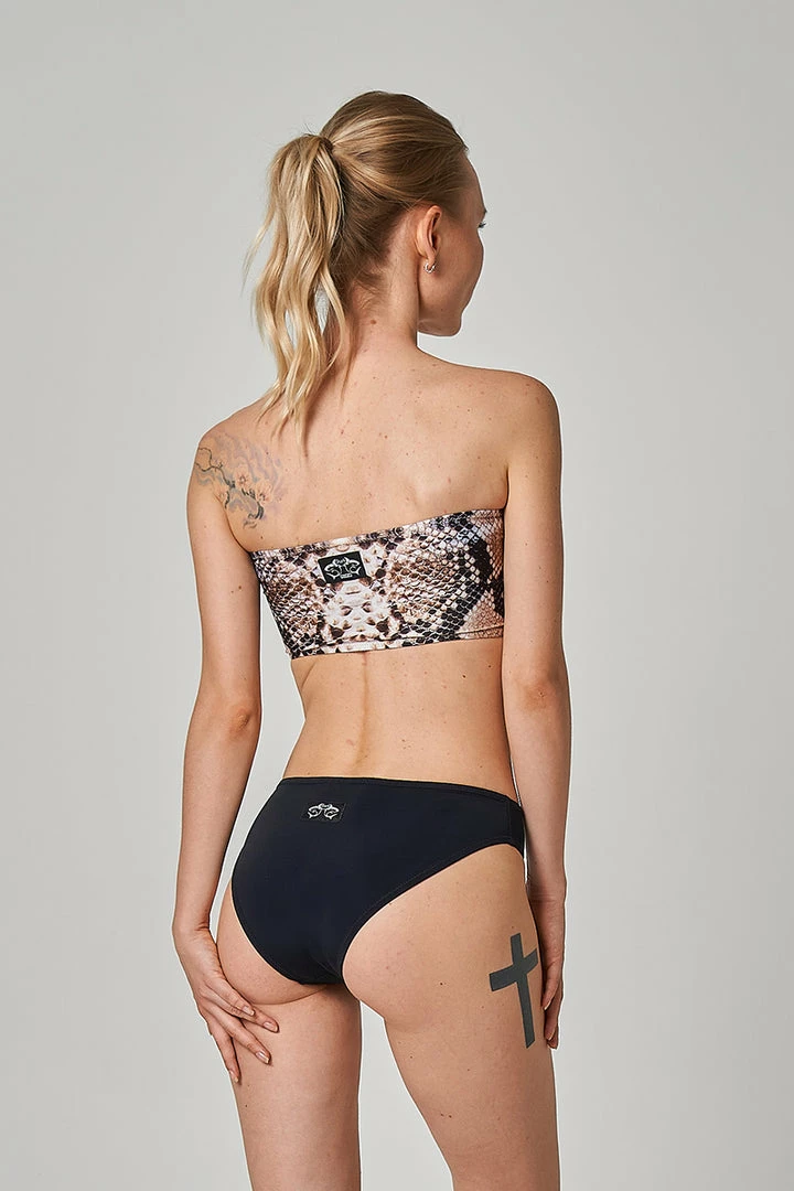 A classic bandeau in your favourite reptile print. Wear under sheer tops, as part of your summmer style or to the studio as part of a kick ass pole set.Β Ruched in the middle to follow your curves and accentuate your assets.