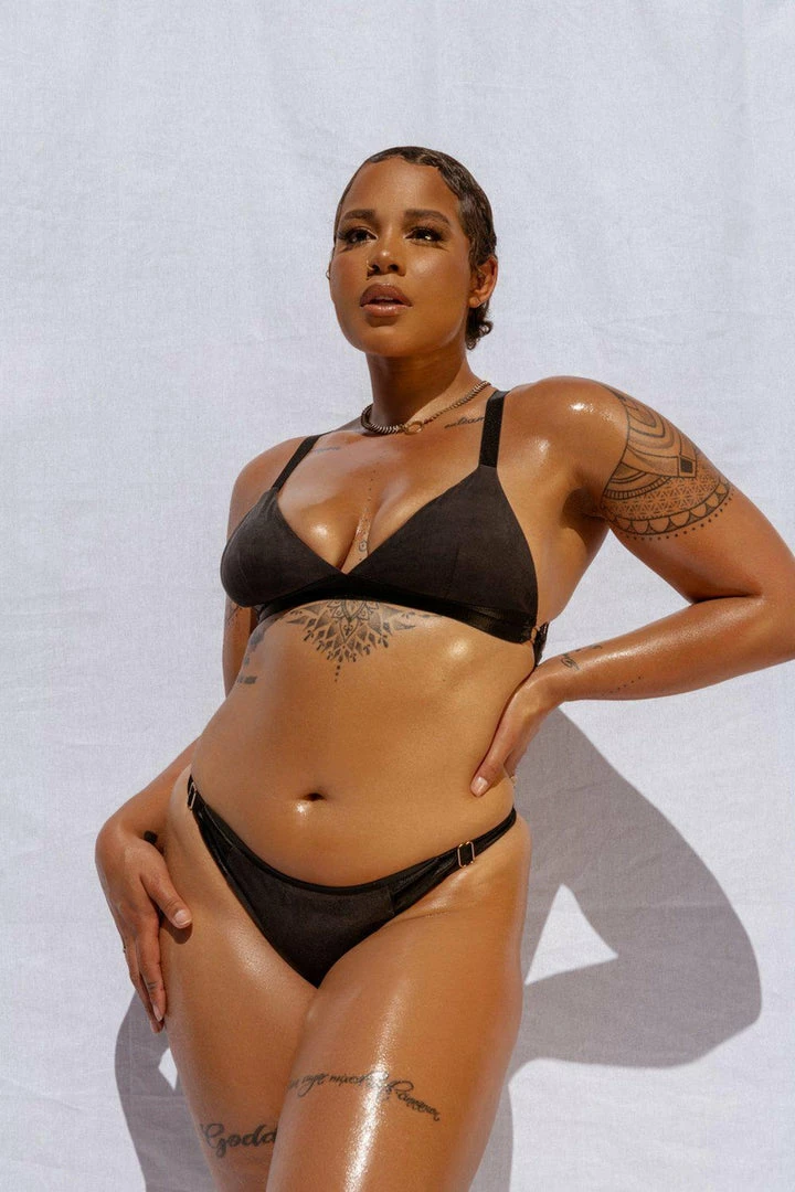 APHRODITE Raw and sleek textures, pairing Faux Suede with Satin and Gold Hardware Detailing for an Ultra Hot Aesthetic