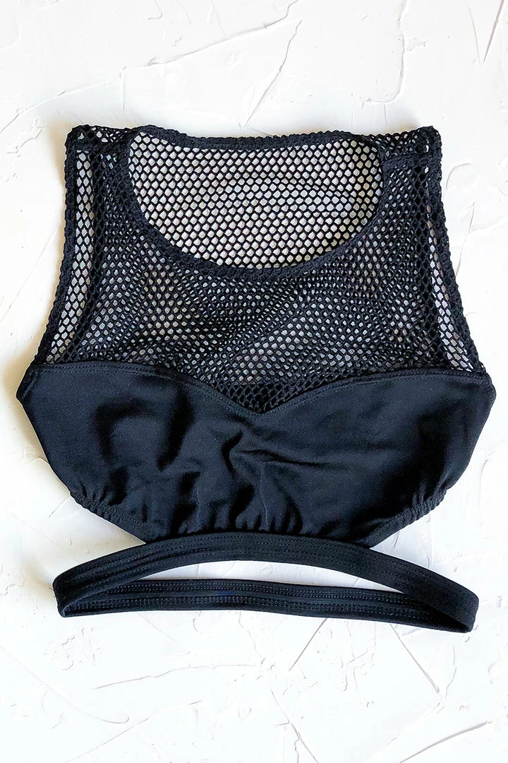 TheΒ Back Strap Top with fishnet panelling keeps this top hot and ready for pole choreo and training.