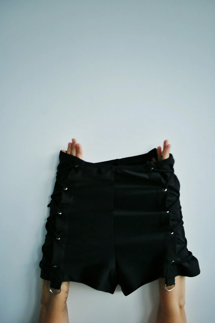Super snatched, high waisted, high cut shorts with buckle detailing.Β Lace up sideΒ detailing and a cheeky cut take these shorts toΒ next level hotness.