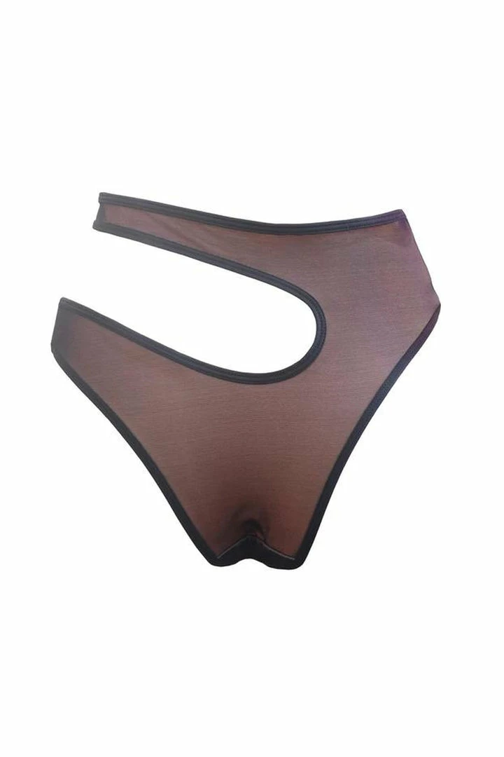 Get ready to turn heads in this iconic asymmetric black mesh set. High leg shorts with cut out section on one hip.Β The nude underlay gives the illusion of nudity without needing to bare all.