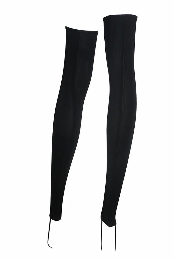 Thigh high stirrup leg warmers with adjustable lace-upΒ detail. These are a must!