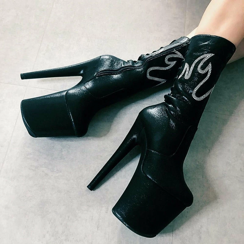 Back lace up, inside zip closure and a flamin’ hot aesthetic.