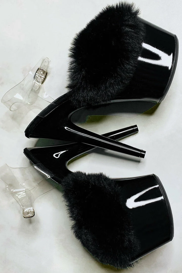 Sleek Black platform and the softest faux fur, weβve levelled up your casual slides!