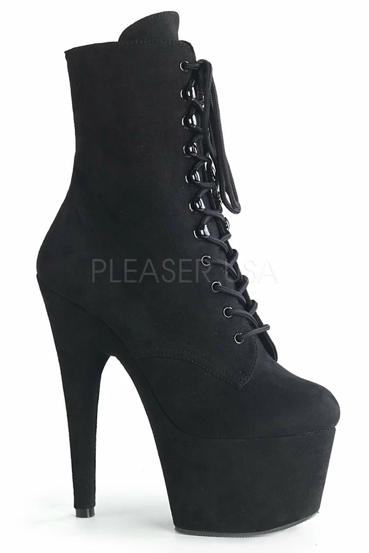 - BlackΒ Faux SuedeΒ Platform Lace-Up Front Ankle Peep toe Boot, Inside Zip Closure