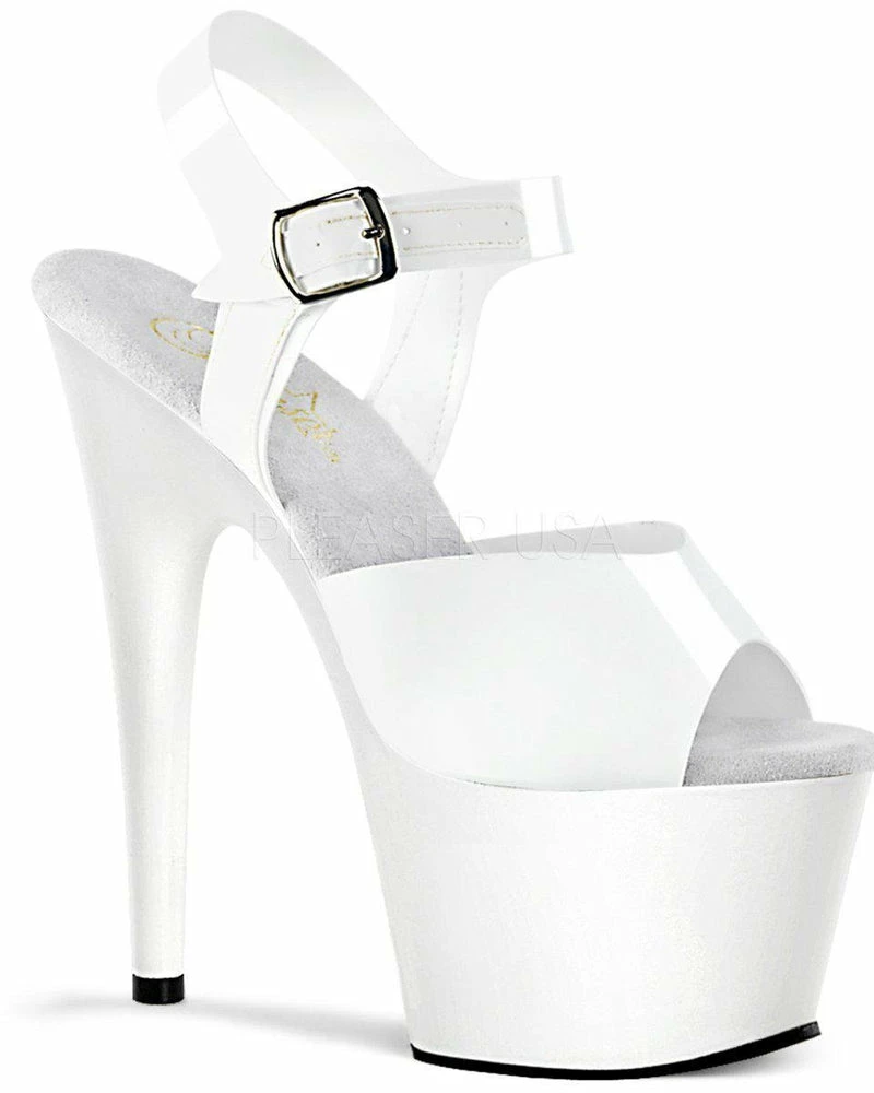 What a heel that fits like a glove? Wish you could have a singular coloured heel and ankle strap but enjoy the flexibility of your clear plastic uppers? Well the new Adore-708N’s are here! This new style has coloured TPU uppers to match the platform colour.