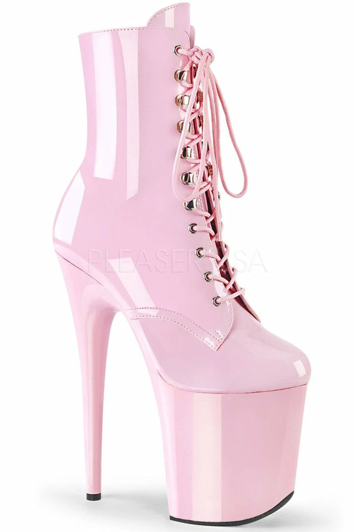 - Patent Baby PinkΒ Platform Lace-Up Front Ankle Boot, Inside Zip Closure