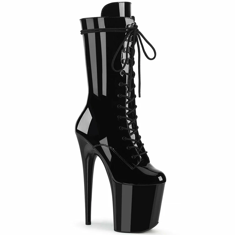 - PatentΒ Black Platform Lace-Up Front Ankle Boot, Inside Zip Closure
