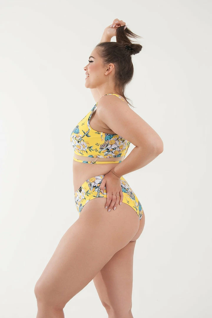 This scoop neck top featuring a mesh underbustΒ band and keyhole cutout is going to make your look glorious without compromising on support and coverage.Β The skinny cross over back straps are our favourite design feature.