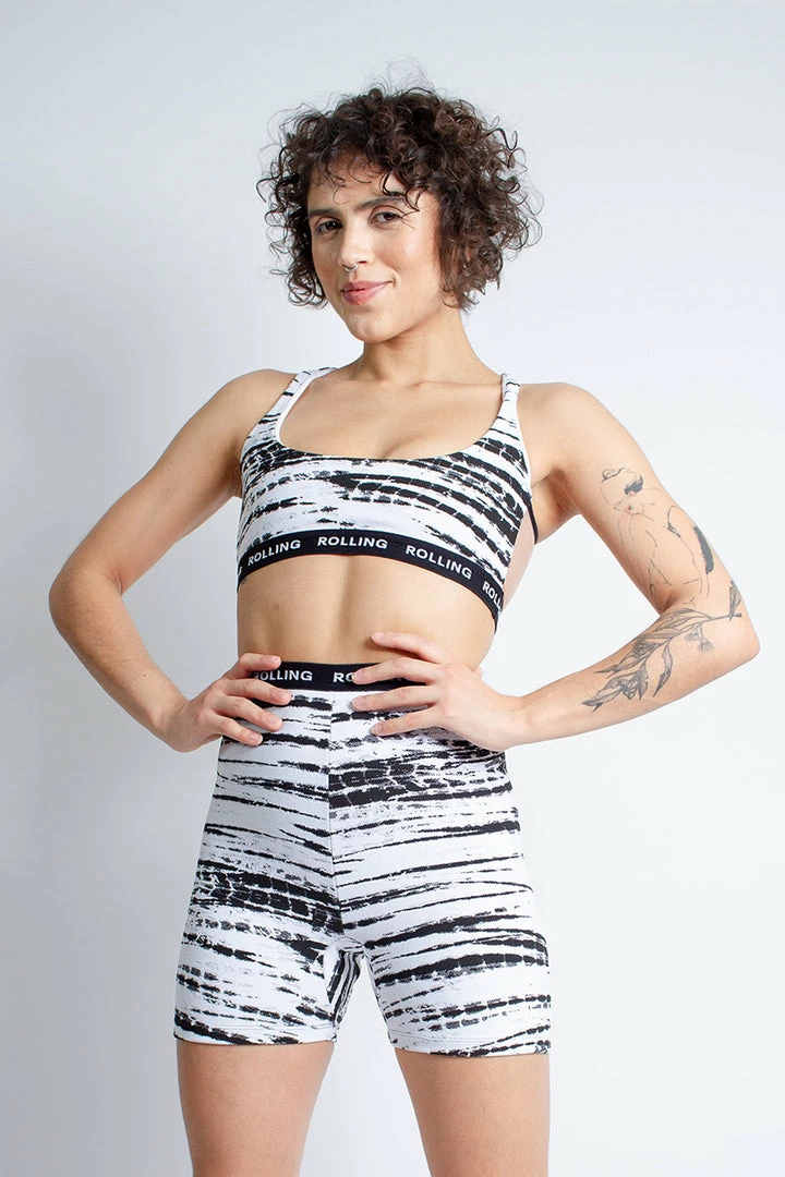 Styled with the Rolling Alpha Biker Shorts in Zebra!