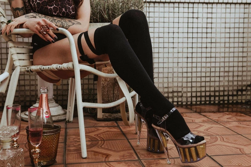 Over the knee socks are the perfect addition to your pole outfit. Wear them on their own or attach them to your favourite Rolling harness using the adjustable suspender straps.