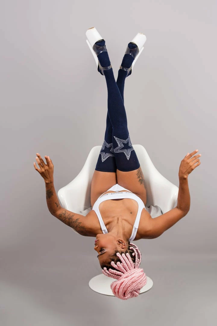 Escape from this crazy world and dance with the stars. Navy socksย with white star design.