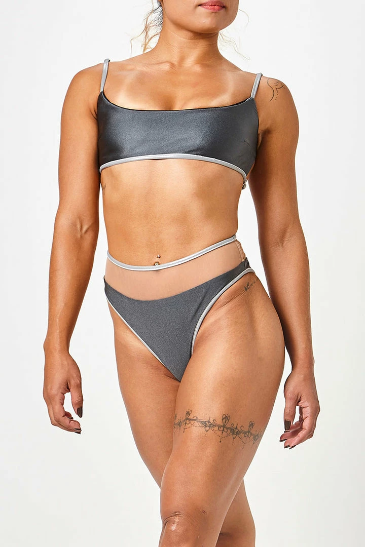 This shimmery set is out of this world.Β This scoop neckΒ top can be worn black or Space Grey so you can change up our look. We love the silver piping details and strappy back.
