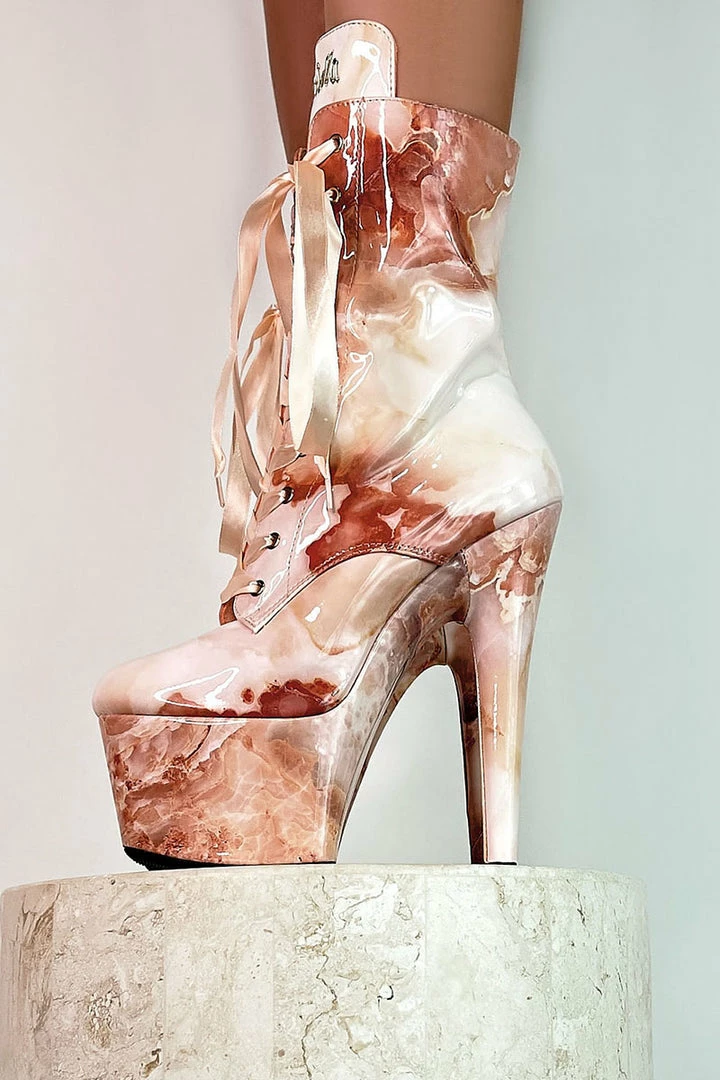 ๐ฉย Heavenly Hues, Soft and Rich mix of Pink Opal-esque marble with soft peach Ribbon lacesย to elevate the look.ย