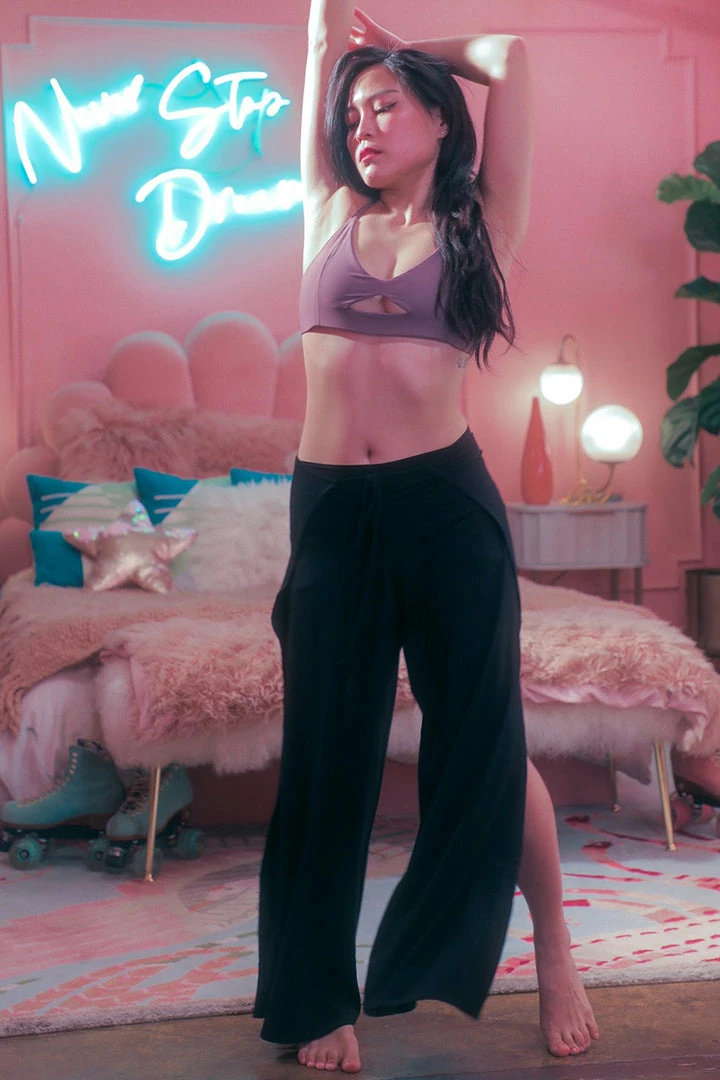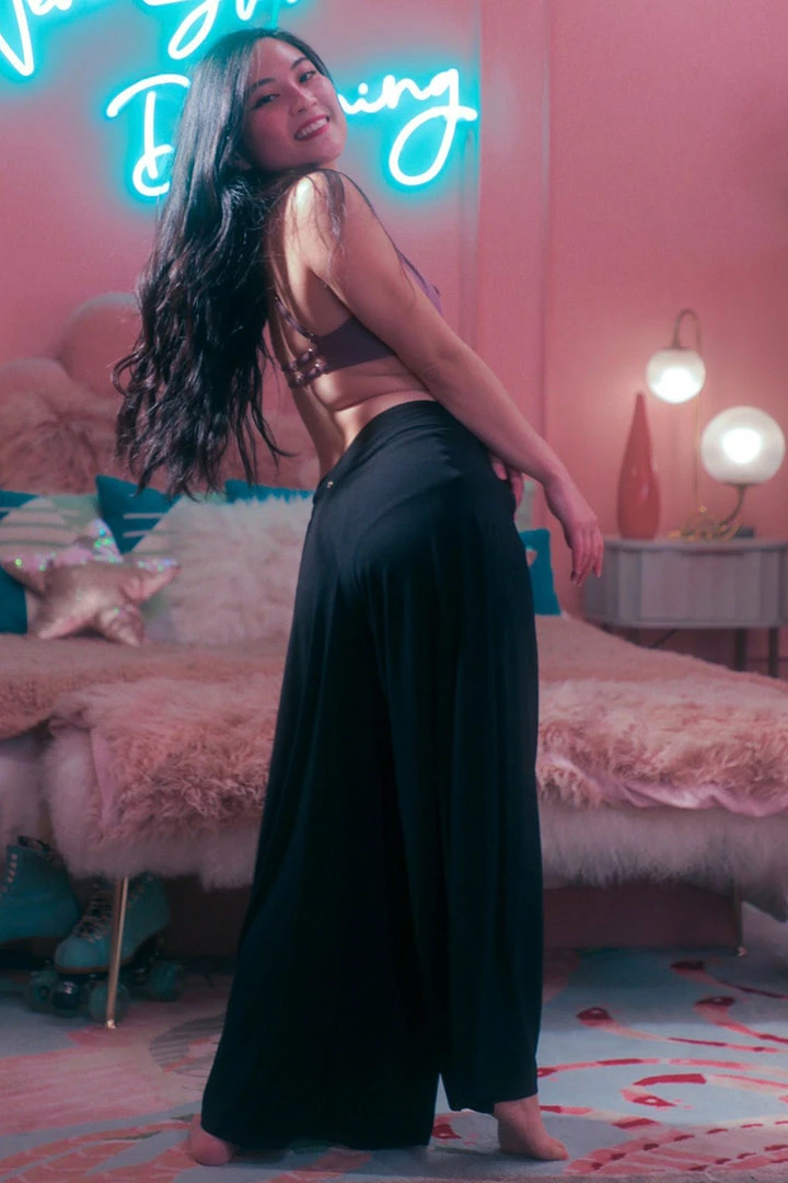 Flow around or day dream in comfort.Β Namasway palazzo pants will make you feel glamorous and luxurious and you will not want to take them off … and why would you? they are perfect for layering over polewear buy will also make great homewear of home-office-wear.