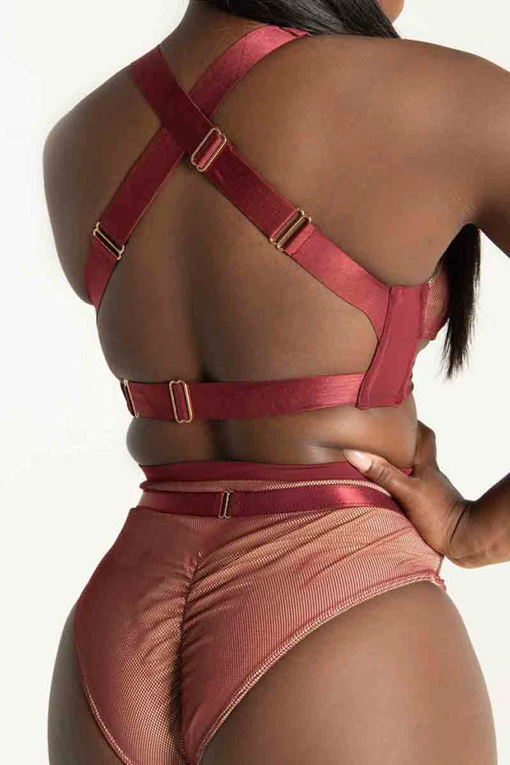 Styled with the Tatiana Activewear Yuki Shorts in Burgundy Mesh!